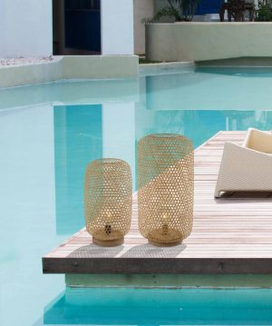 Pure nature ! L’abat-jour de cette lampe sur pied est en treillis de bambou, permettant à la lumière de rayonner directement dans l’environnement. La lampe avec un raccord E27 est également visible. Cela permet d’opter alternativement pour une source de lumière décorative. Avec une ampoule LED, vous assurez encore plus de durabilité. Avec une hauteur de 55 cm, cette lampe est un excellent accessoire pour la maison.