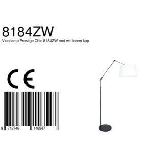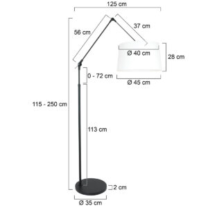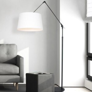 Lampadaire bras articulé Steinhauer Prestige Chic abat-jour lin noir et blanc