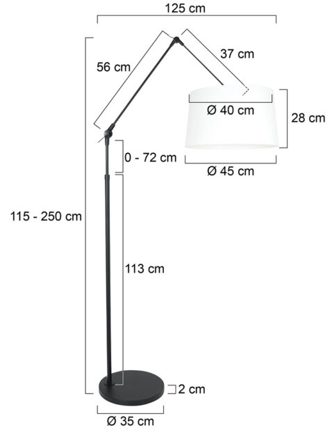Lampadaire bras articulé Steinhauer Prestige Chic abat-jour lin noir et blanc