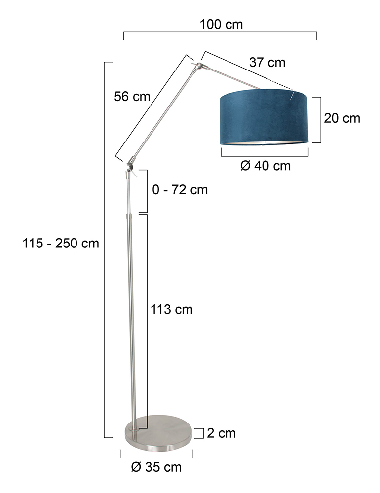 Lampadaire bras articulé Steinhauer Prestige Chic acier avec abat-jour bleu