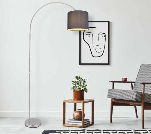 Cette lampadaire de la série Sanna, mesurant 195 cm de hauteur, combine une base en métal nickel mat avec du textile de couleur anthracite. La tige métallique courbée vers le haut soutient un abat-jour rond en textile dans lequel une ampoule E27 peut être installée pour ajuster la couleur et la luminosité de la lumière selon vos désirs. Inclus un interrupteur pour une utilisation facile.