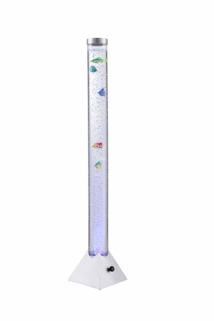 Découvrez la lampe sur pied premium de notre collection Mendoza, qui se distingue par son design unique et frappant. La lampe est dotée d’une base carrée finie dans une couleur métallisée argentée, tandis que le tube de 10 cm de diamètre, fabriqué en plastique transparent, contient cinq poissons pour un effet visuel captivant. Profitez du changement de couleur RGB et de la vivacité de 12 lampes LED colorées, faciles à utiliser avec un simple interrupteur marche/arrêt. L’atout supplémentaire de ce modèle élégant est sans aucun doute sa haute efficacité énergétique.