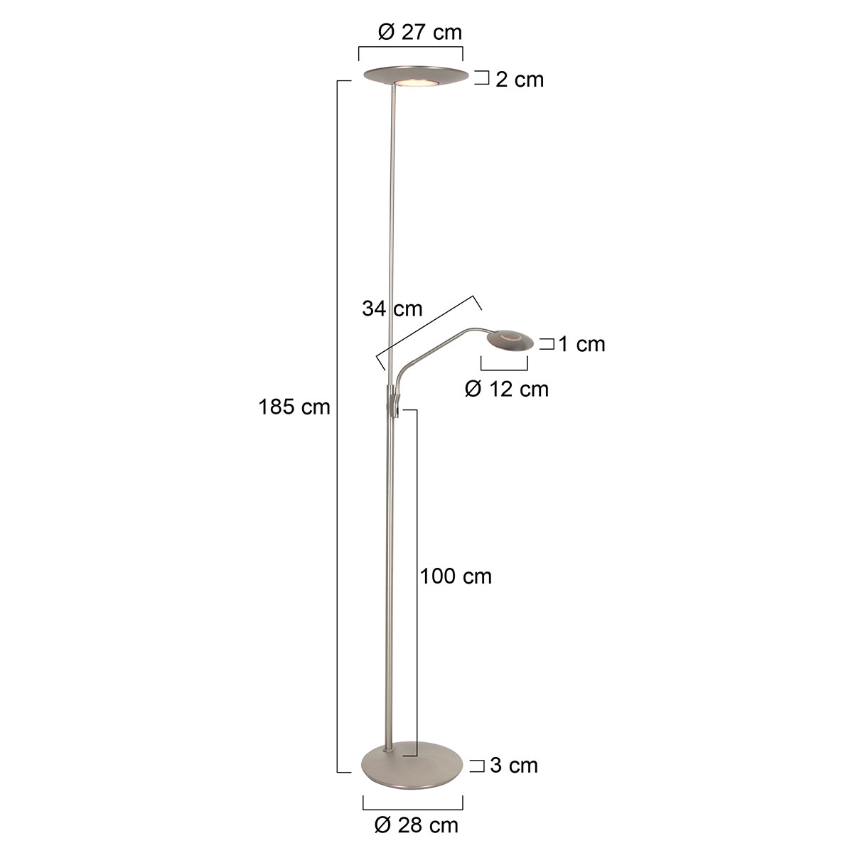 Lampadaire en acier uplight avec bras de lecture Steinhauer Zenith