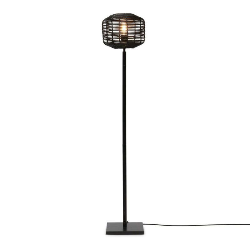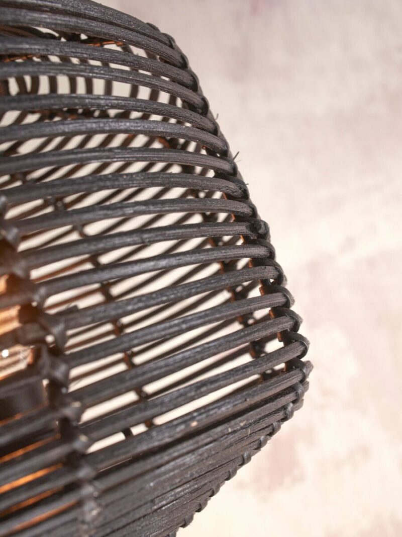 Lampe sur pied en bambou bohéme noire en rotin, GOOD&MOJO Tanami. Parfaite pour la salle à manger, la chambre ou le salon. Équipée d’une douille E27 et résistante à la poussière (IP20). Ampoule non incluse. Ajoutez une touche bohéme contemporaine à votre intérieur avec cette lampe.