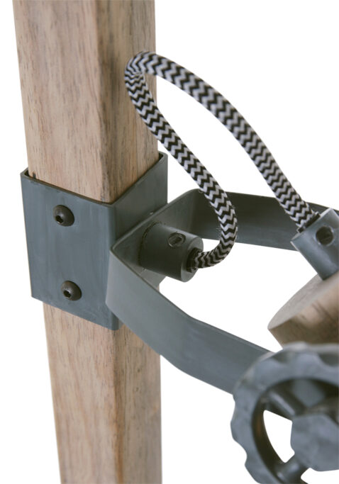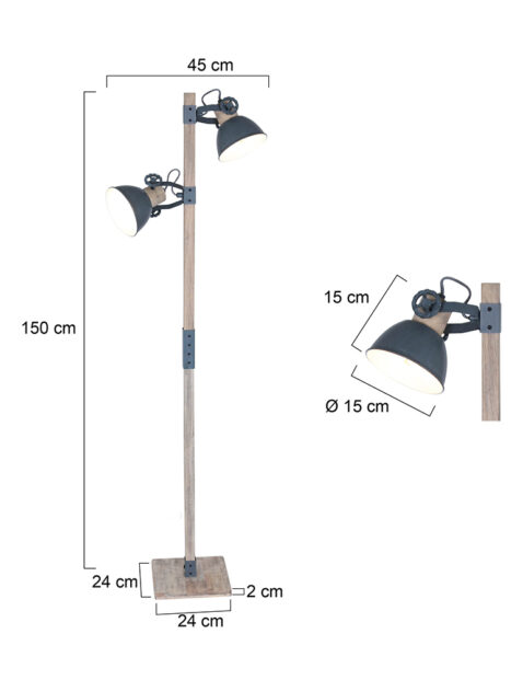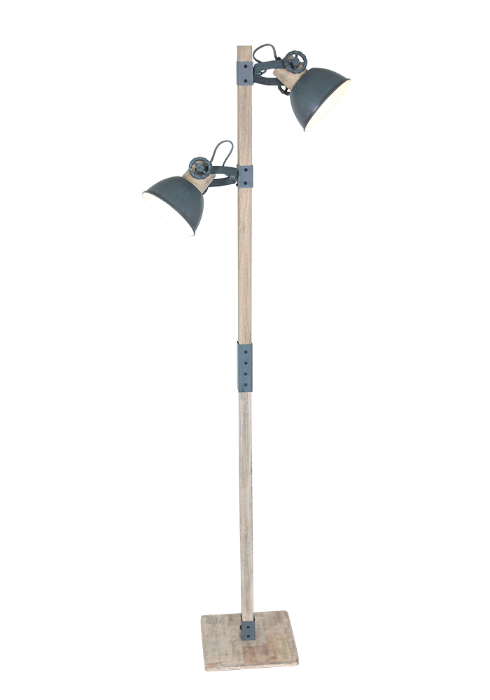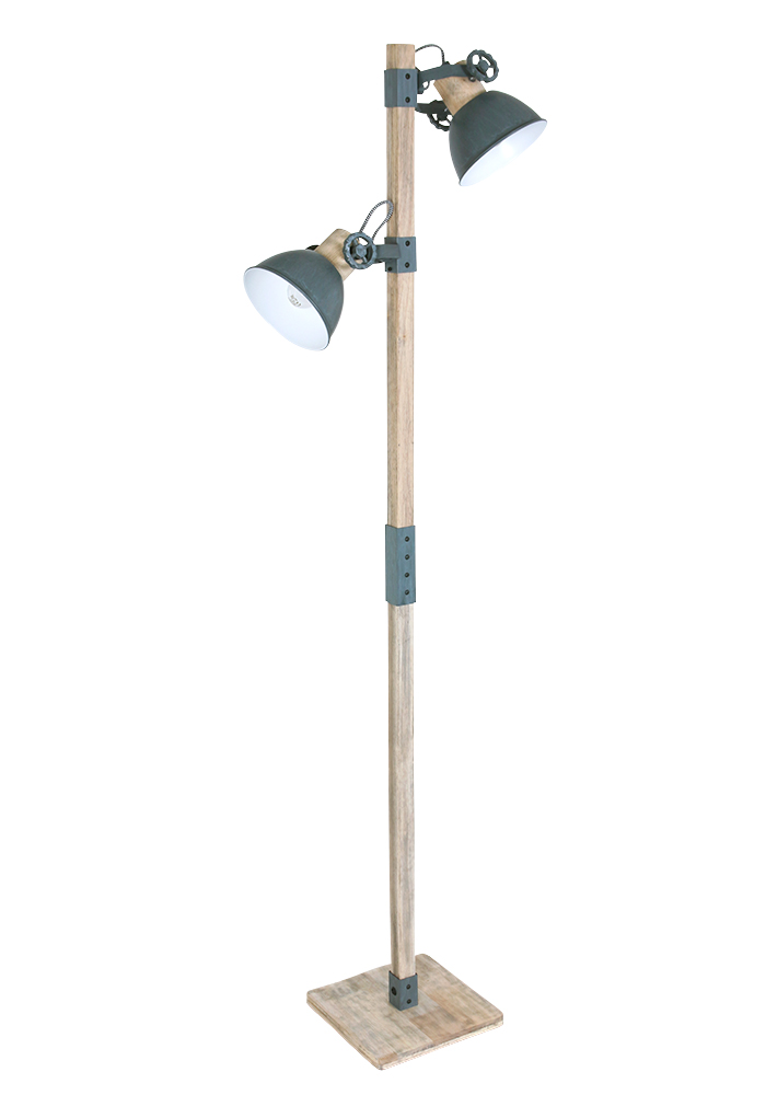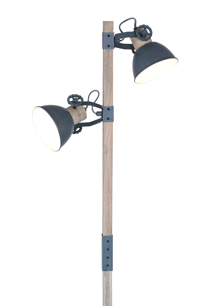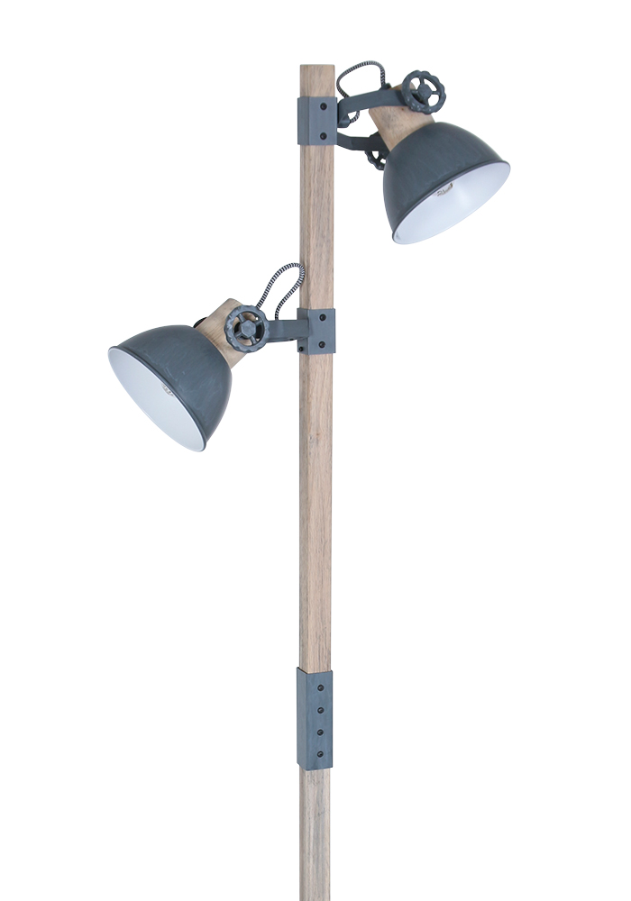 Le lampadaire de la série Gearwood de Mexlite combine des matériaux robustes avec une apparence industrielle. Le design se compose d’une base en bois avec un cadre en métal et des abat-jours en demi-cercle réglables, qui peuvent être inclinés séparément à l’aide d’engrenages. La lampe est compatible avec des sources de lumière E27 jusqu’à 40 watts (non incluses) et peut être atténuée avec un variateur externe. Ce lampadaire est livré avec une garantie de 2 ans.