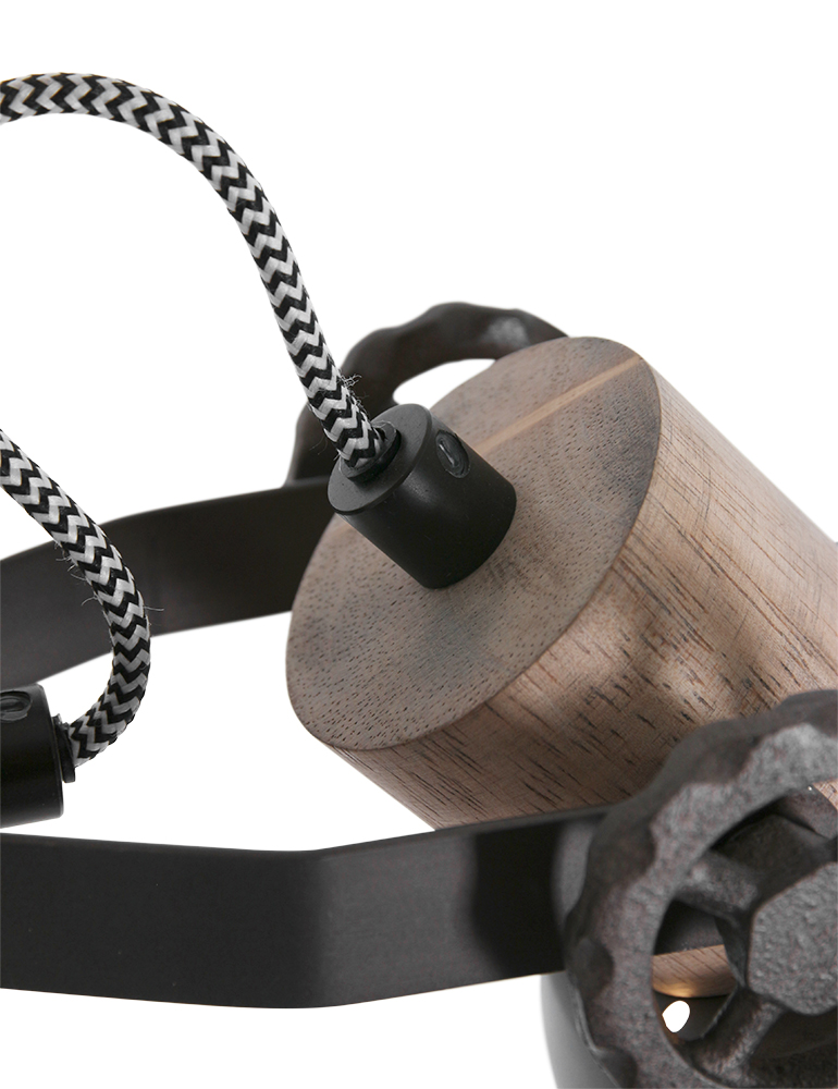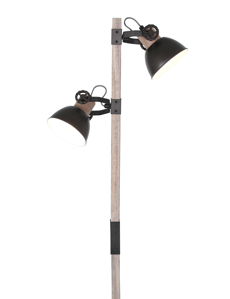 Lampadaire en bois deux abat-jour Mexlite Gearwood noir