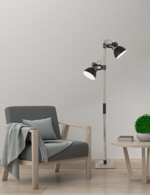 Les amateurs de décoration industrielle devraient trouver leur bonheur avec ce lampadaire qui allie des éléments naturels avec la base et le pied en bois ainsi que des éléments métalliques, dont deux abat-jour noirs. Les écrous apparents renforcent l’aspect industriel du lampadaire. Pourquoi hésiter davantage ?