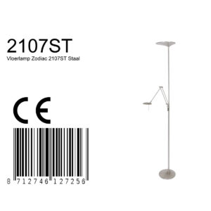 Ce lampadaire de la série Zodiac combine un uplighter et une liseuse, tous deux équipés de modules LED efficaces qui peuvent être facilement remplacés. La liseuse contient un module LED de 6 watts avec une température de couleur de 2700 Kelvin et un rendement lumineux de 700 lumens. L’uplighter est équipé d’un puissant module LED de 25 watts avec une température de lumière chaude de 2700 Kelvin. Les deux sources de lumière peuvent être réglées séparément à l’aide d’un variateur par impulsion situé sur le support. La lampe a une hauteur de 185 cm et repose solidement sur un pied d’un diamètre de 25 cm.