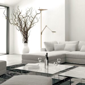 La lampe sur pied en bronze de la série Zodiac combine un uplighter et une lampe de lecture, tous deux équipés de modules LED remplaçables. La lampe de lecture a un module LED de 6 watts (2700 Kelvin, 700 lumens) et l’uplighter un puissant module LED de 25 watts (2700 Kelvin). Avec le variateur individuel sur le tube, vous pouvez dimmer chaque lampe séparément. La lampe sur pied a une hauteur de 185 cm et une base solide d’un diamètre de 25 cm.