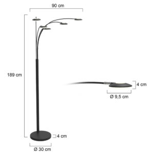 La lampe de sol LED moderne à cinq lumières Mexlite Synna noire ne se contentera pas d’éclairer vos pièces, mais grâce à ses cinq points lumineux, elle attirera également l’attention en tant qu’élément central de votre décoration intérieure. Vous pouvez la placer à côté de votre fauteuil de lecture dans votre salon au style classique, tout comme dans un bureau au style contemporain.