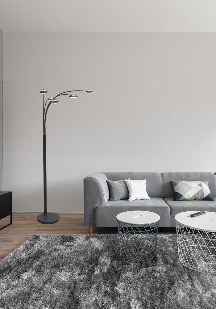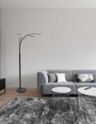 La lampe de sol LED moderne à cinq lumières Mexlite Synna noire ne se contentera pas d’éclairer vos pièces, mais grâce à ses cinq points lumineux, elle attirera également l’attention en tant qu’élément central de votre décoration intérieure. Vous pouvez la placer à côté de votre fauteuil de lecture dans votre salon au style classique, tout comme dans un bureau au style contemporain.