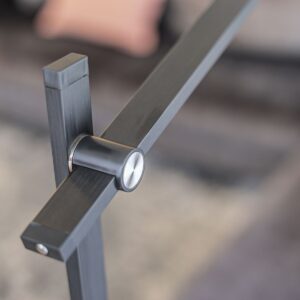 Le lampadaire noir de la série Stekk combine un design minimaliste avec une fonctionnalité pratique. Équipé d’un module LED de 8 Watts et d’une luminosité de 720 lumens à une température de couleur de 2700 Kelvin. La lampe est réglable en hauteur de 135 à 170 cm et dispose d’un bouton de variateur à l’arrière pour ajuster facilement l’intensité lumineuse.