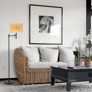 Lampadaire liseuse design noir abat-jour raphia Steinhauer Stang naturel et noir