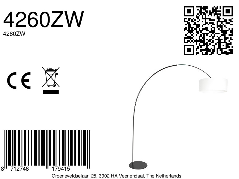 Avec une hauteur de 210 cm et une portée de 48 cm, cette lampe offre à la fois hauteur et style. La large base assure une installation stable et le socle E27 vous donne la liberté de choisir la source de lumière souhaitée. Le fonctionnement se fait via un interrupteur intégré dans le cordon.