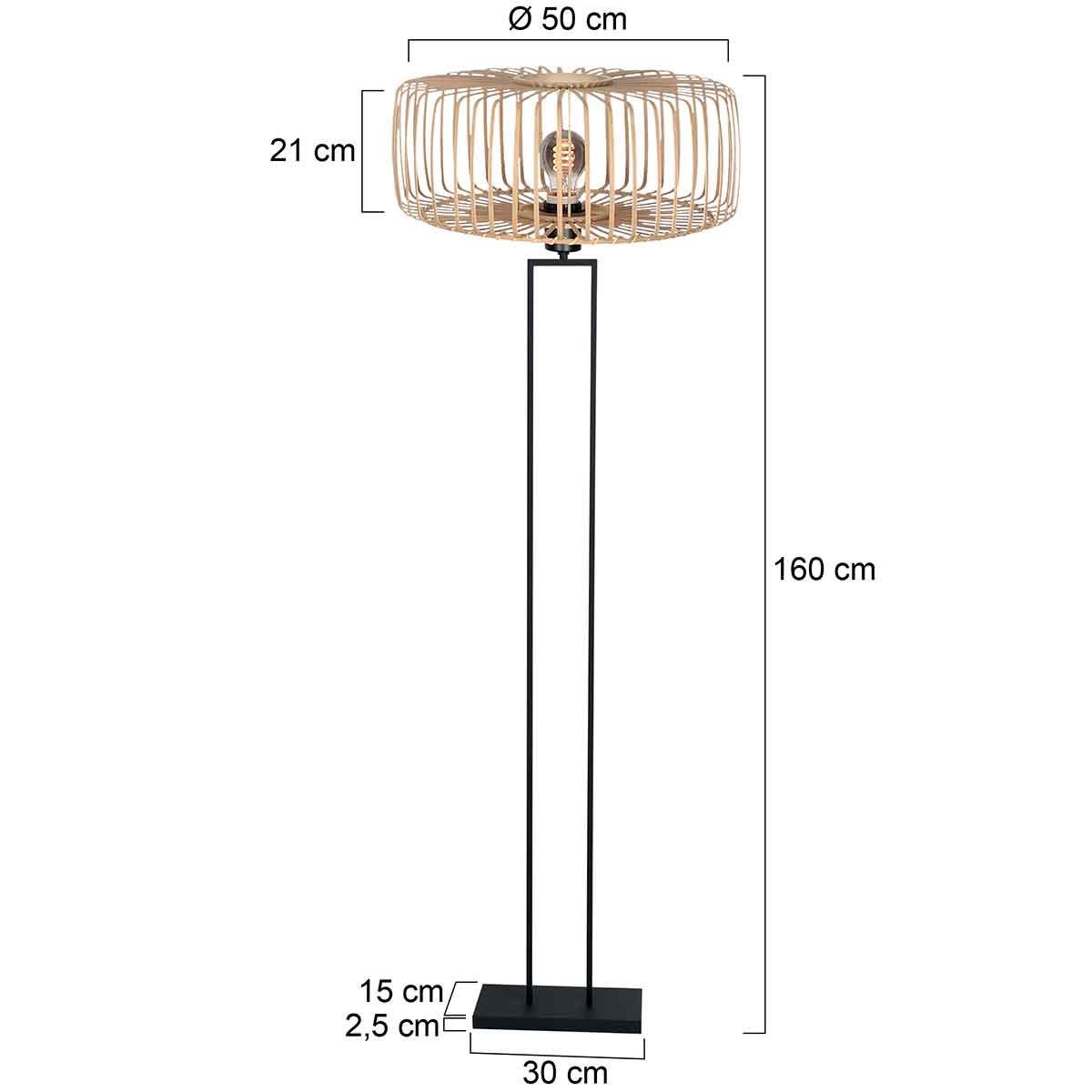 La lampe sur pied Stang de Steinhauer allie robustesse industrielle et élégance naturelle. Cet éclairage en métal noir d’une hauteur de 160 cm dispose d’un culot E27 inclinable, permettant à l’abat-jour en bambou de 50 cm de toujours être bien droit. L’interrupteur intégré dans le cordon apporte un confort supplémentaire. Idéal pour une ambiance chaleureuse dans la salle à manger, la chambre ou le salon. Une lampe sur pied polyvalente pour les amateurs d’un look bohème avec une touche industrielle. Comprend une garantie fabricant de 2 ans.