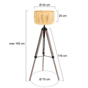 La lampe sur pied noire avec un abat-jour en herbe de Mexlite Triek ajoute une touche naturelle et rétro à votre intérieur. Idéale pour votre bureau (à domicile), salle à manger, chambre ou salon, cette lampe en herbe et en bois est équipée d’une douille E27. Avec une hauteur réglable de 125 à 170 cm et un diamètre de 75 cm, cette lampe offre un éclairage chaleureux et convivial.