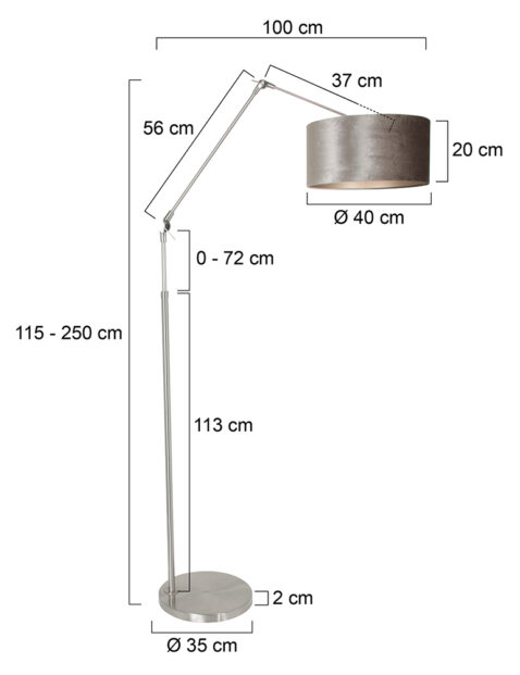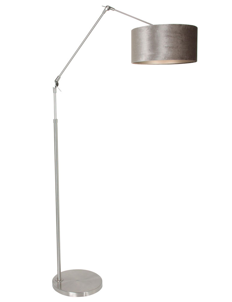 Lampadaire orientable long bras Steinhauer Prestige Chic abat-jour velours argenté