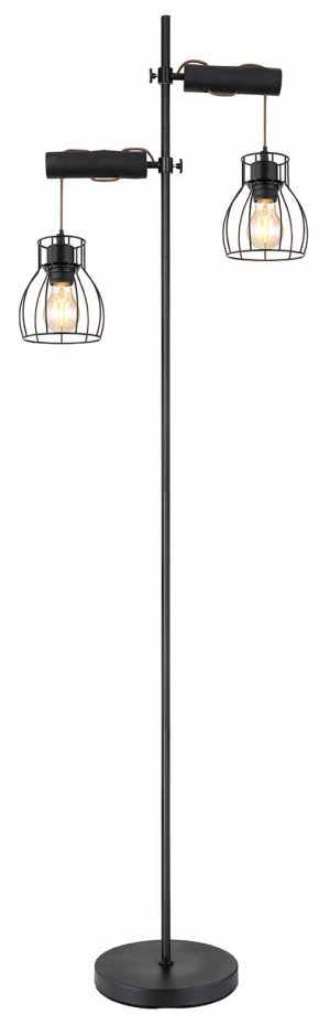 Cette lampe sur pied de la série Mina a un design simple en métal noir mat. La lampe de 168 cm de haut possède deux cylindres horizontaux en bois noir avec des écrans en métal noir en treillis. Les douilles E27 offrent une liberté dans le choix de la lumière. Comprend un interrupteur. Combinez avec d’autres modèles de la même série pour un intérieur complet.