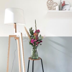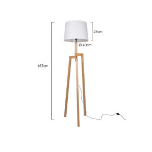 Lampe sur pied scandinave à trois pieds de la série Sabi, une combinaison chaleureuse d’un socle en bois et d’un abat-jour blanc. Avec un diamètre d’abat-jour de 40 cm et une hauteur d’abat-jour de 28 cm, cette lampe apporte une touche rustique chaleureuse à votre intérieur. Équipée d’une douille E27, adaptée aux sources lumineuses jusqu’à 40 watts. Livrée avec un câble noir et blanc et un interrupteur au sol pour une utilisation facile. Deux ans de garantie fabricant inclus.