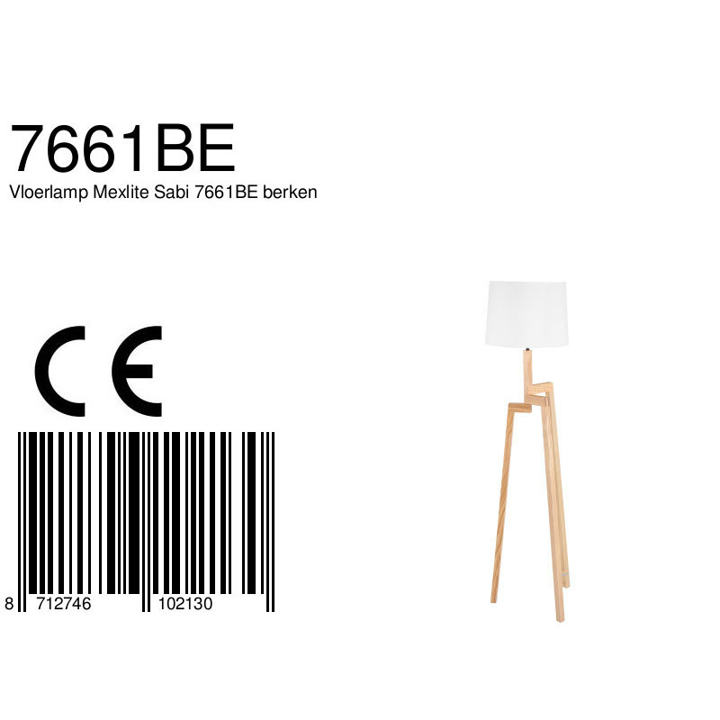Lampadaire rustique trepied en bois de bouleau Mexlite Sabi