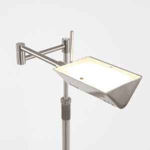 La lampe de sol moderne en acier de Mexlite allie un design épuré à une utilisation fonctionnelle. La lampe de lecture réglable est fabriquée en acier brossé et possède un bras articulé flexible, ce qui vous permet de diriger la lumière exactement là où c’est nécessaire. Le module LED de 10 watts intégré offre une couleur lumineuse chaude de 2700 Kelvin et un rendement lumineux de 900 lumens. Avec le variateur à impulsion sans paliers, vous pouvez facilement régler l’intensité lumineuse, parfait pour différentes ambiances. La hauteur est ajustable de 114 cm à 145 cm et la lampe est livrée avec un cordon de 172 cm. Idéale pour la salle à manger, le salon ou comme ajout élégant à votre bureau (à domicile).