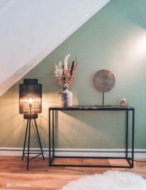 Le lampadaire trépied noir avec abat-jour en fil Gruaro est de la marque Light & Living. Cette lampe au design recherché a été conçue en métal au niveau du pied. L’abat-jour en fil permet de filtrer les rayons de lumière et ainsi créer une ambiance chaleureuse. Idéale à côté de votre canapé, Gruaro offre l’éclairage parfait pour passer une soirée dans votre salon. Ce lampadaire est une évidence dans un intérieur industriel mais son abat-jour fait qu’il s’adapte aussi dans les salons modernes ou scandinaves.