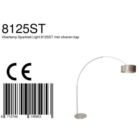 Lampe à arc acier avec abat-jour argent Steinhauer Sparkled light opaque et noir