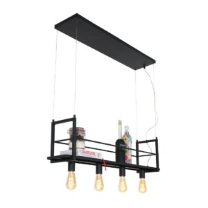 Êtes-vous à la recherche d’une jolie lampe de cuisine pour au-dessus de votre îlot de cuisine ? Il y a de fortes chances que vous rentriez chez vous avec le modèle “Buckley” de Mexlite. Certes, il est “un peu” plus grand que prévu, mesurant 130 cm, mais sur l’étagère du “Buckley”, vous pouvez agréablement disposer tous vos pots d’épices et vos bocaux de rangement. Les quatre sources de lumière viendront-elles soutenir vos talents culinaires ?