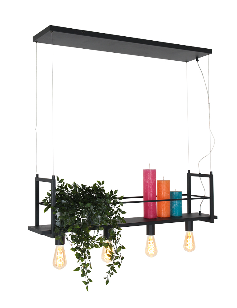 Êtes-vous à la recherche d’une jolie lampe de cuisine pour au-dessus de votre îlot de cuisine ? Il y a de fortes chances que vous rentriez chez vous avec le modèle “Buckley” de Mexlite. Certes, il est “un peu” plus grand que prévu, mesurant 130 cm, mais sur l’étagère du “Buckley”, vous pouvez agréablement disposer tous vos pots d’épices et vos bocaux de rangement. Les quatre sources de lumière viendront-elles soutenir vos talents culinaires ?