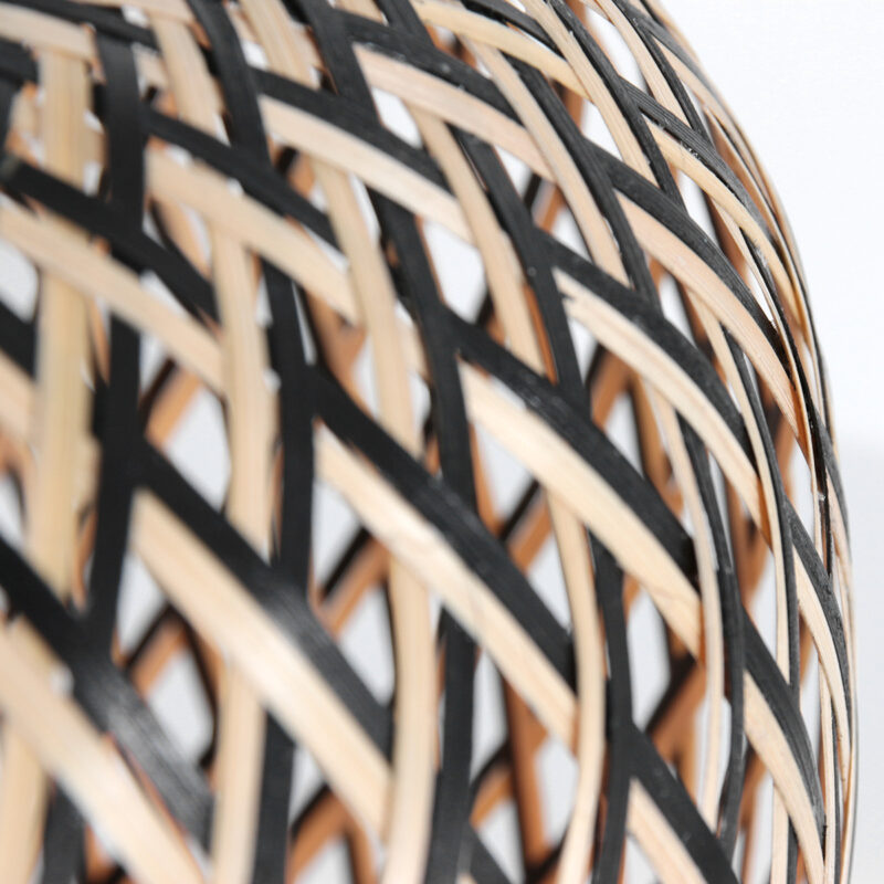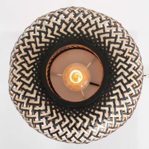 La lampe de table Maze combine un design naturel avec un éclairage d’ambiance. Cette lampe en forme de vase, fabriquée en bambou tressé clair et noir, dégage chaleur et convivialité. Avec une hauteur et un diamètre de 30 cm, elle est idéale comme lampe de nuit ou éclairage décoratif sur un buffet. La lampe est équipée d’un support E27 et d’un interrupteur à cordon pour une utilisation facile. La structure ouverte crée un motif lumineux ludique dans l’espace.