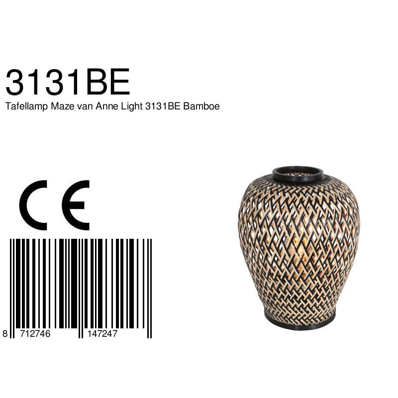 Lampe à poser bambou tressé beige Anne Lighting Maze noir