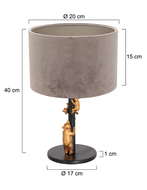 Lampe à poser Bear abat-jour velours Anne Light & Home taupe