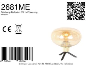 La lampe de table de couleur laiton de la série Reflexion allie élégance et chaleur. L’abat-jour en verre ambré diffuse une lumière douce et agréable. Avec une hauteur de 22 cm, cette lampe est parfaite pour les tables de nuit, les commodes ou les tables d’appoint. Équipée d’un socle E27, elle convient aux sources lumineuses jusqu’à 40 Watts. Fournie avec un cordon noir de 150 cm avec interrupteur.