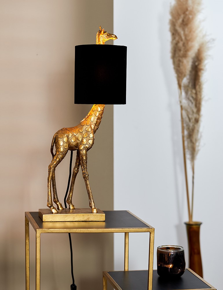 Lampe à poser girafe abat-jour noir Light & Living bronze