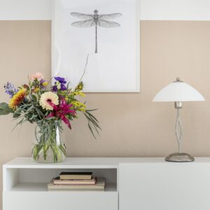 Une lampe de table atmosphérique Capri est un véritable accroche-regard dans le salon. L’abat-jour en verre mat offre une belle répartition de la lumière dans la pièce. Accompagnez un coin sombre de la maison avec la lampe d’ambiance Capri !