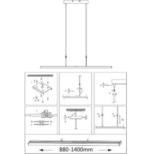 Le luminaire suspendu moderne noir extensible de la série Zelena de Steinhauer allie un design épuré à une technologie d’éclairage innovante. Avec quatre points de lumière (2x 4 Watt, 800 Lumen et 2x 13 Watt, 2600 Lumen), cette lampe offre une diffusion de lumière polyvalente. Avec le variateur à bouton-poussoir, vous pouvez ajuster la couleur de la lumière de 2200 à 4000 Kelvin et dimmer la lumière à votre guise. La hauteur est réglable de 78 cm à 120 cm et la longueur peut varier de 88 cm à 140 cm.