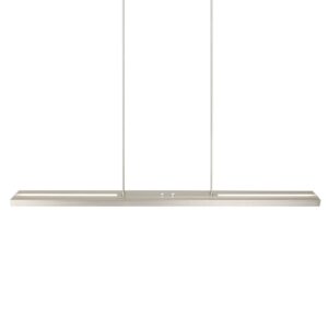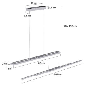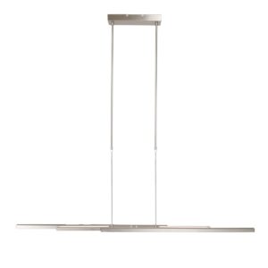 La lampe de salle à manger moderne en acier extensible de la série Zelena de Steinhauer offre une expérience d’éclairage unique grâce à quatre points lumineux : deux en dessous et deux au-dessus, répartissant la lumière de manière particulière. Équipée de bandes LED intégrées (2x 4 Watt, 800 Lumens et 2x 13 Watt, 2600 Lumens) pour une distribution lumineuse optimale. Le variateur à pression en haut permet d’ajuster la couleur de la lumière entre 2200 et 4000 Kelvin et de diminuer l’intensité. Réglable en hauteur de 78 cm à 120 cm et en longueur de 88 cm à 140 cm.