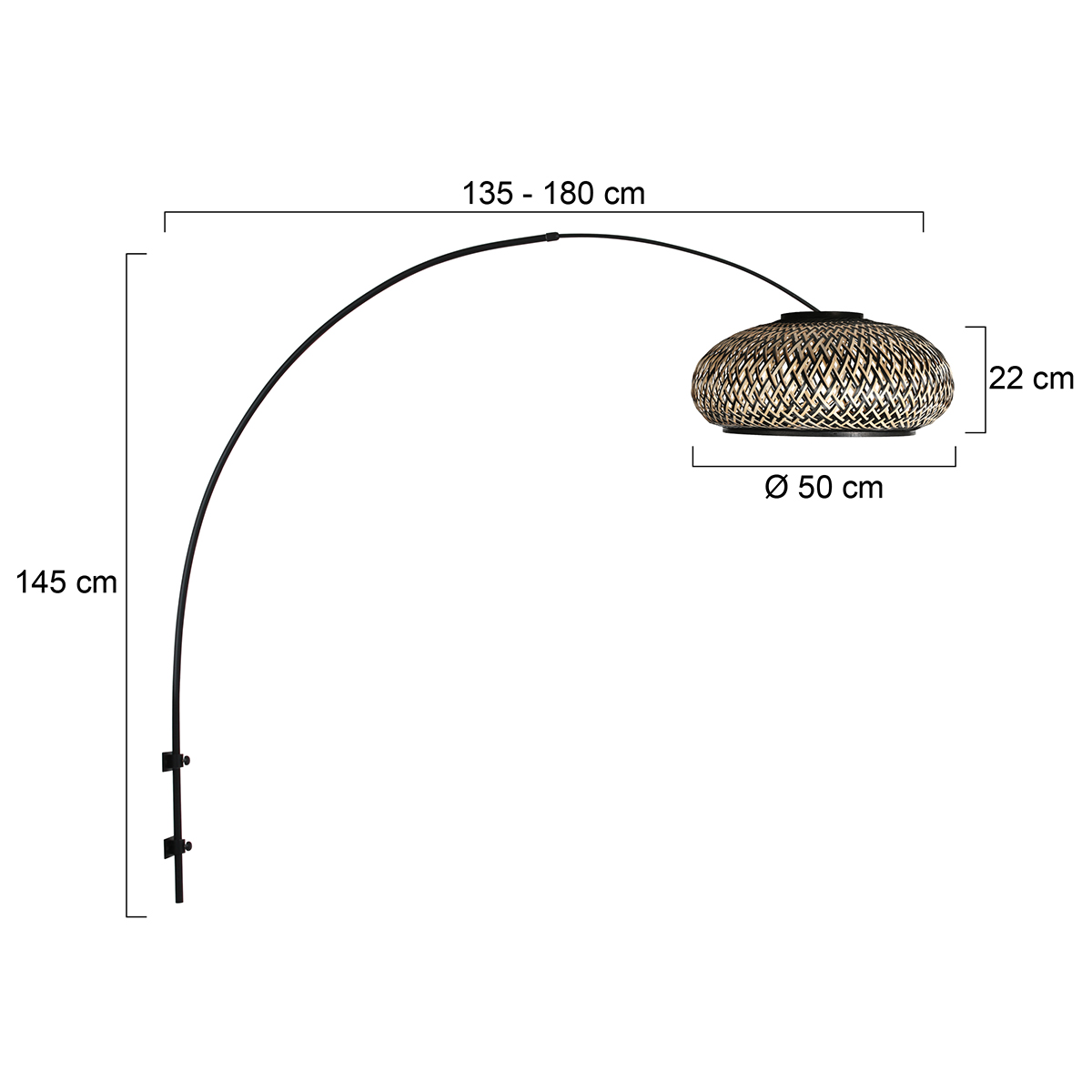 Lampe arc noire avec abat-jour tressé en bambou Steinhauer Sparkled Light