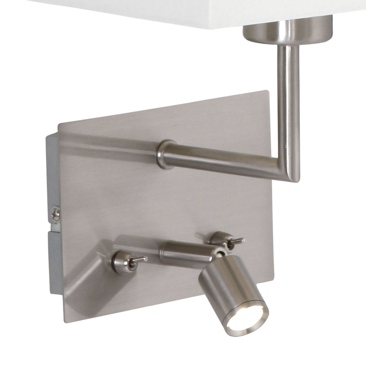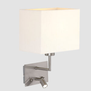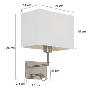 La lampe murale Nouveau de la série Mexlite allie fonctionnalité et design moderne. La lampe murale est finie dans une teinte acier et équipée d’un abat-jour rectangulaire en lin blanc. La lampe de lecture LED intégrée de 3 watts offre une lumière claire et ciblée, tandis que le culot E27 dans l’abat-jour est compatible avec diverses sources lumineuses. Grâce à l’interrupteur double sur la plaque murale, les deux sources lumineuses peuvent être contrôlées séparément. Idéale pour une utilisation comme lampe de chevet ou éclairage d’ambiance dans le salon. Cette lampe murale de la marque Mexlite est fournie avec une garantie de 2 ans.