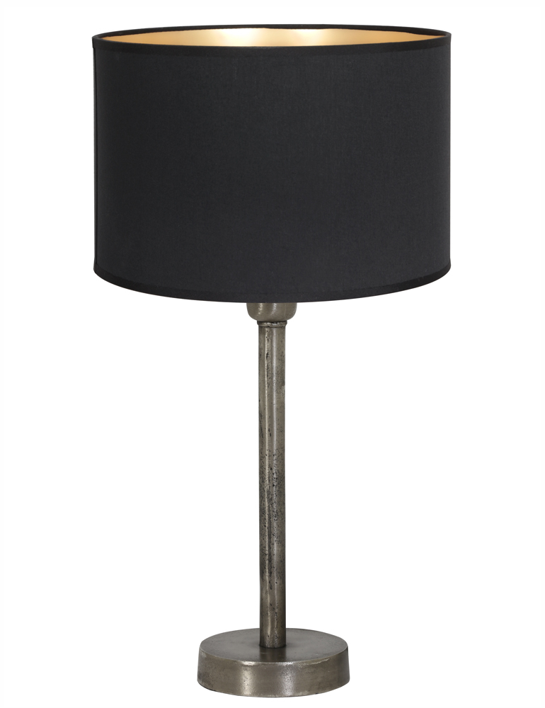 Dans un ton sobre et passe-partout, cette lampe de table noire s’invite volontiers dans votre salon. Elle y apportera sa touche d’élégance par le ton doré de l’intérieur de son abat-jour. Monté sur un pied en métal robuste, cette lampe à poser peut aussi être le luminaire parfait pour votre bureau.