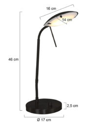 Cette lampe de bureau de couleur noir de la série Eloi a été conçue pour une fonctionnalité optimale et un design épuré. La lampe est équipée d’un support LED et est livrée avec une source de lumière interchangeable. La température de couleur est de 2700 Kelvin, avec une sortie lumineuse de 800 lumens. La lampe est facile à utiliser grâce à l’interrupteur rotatif situé sur la base, qui fait également office de variateur. Grâce au bras inclinable et à l’abat-jour réglable, tu peux ajuster la lumière exactement selon tes besoins. La hauteur varie de 25 cm à 46 cm et la lampe est dotée d’un cordon de 194 cm de long.