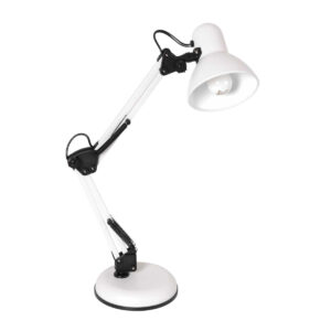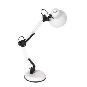 La lampe de bureau blanche de Mexlite est un modèle familier, mais habillé d’une touche industrielle. Tout ce que l’on peut attendre d’une bonne lampe de bureau est présent dans cette lampe. Et avec son beau design, vous obtenez même un peu plus. La base robuste de quinze centimètres est bien proportionnée par rapport à l’abat-jour blanc de plus de douze par treize centimètres. De plus, le bras en deux parties est réglable en hauteur.