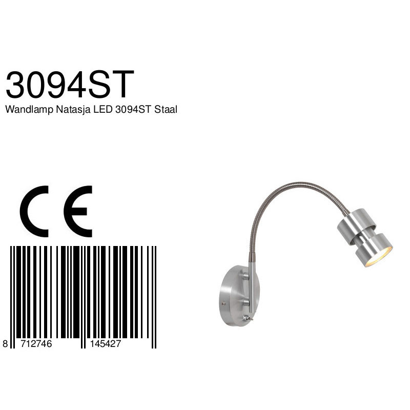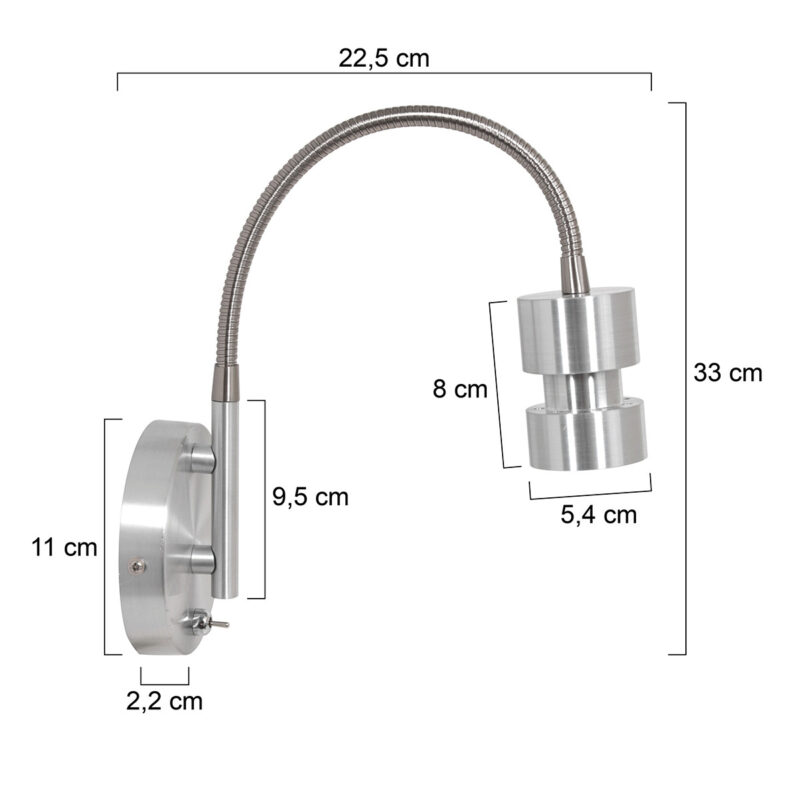 La lampe murale Natasja en acier est la lampe de lecture idéale pour tout intérieur. Grâce à son bras flexible, vous pouvez diriger le faisceau lumineux exactement là où vous en avez besoin. La lampe est fournie avec une source de lumière GU10 qui prend en charge la technologie dim to warm, variant de 2200 à 2700 Kelvin avec une puissance lumineuse maximale de 350 lumens. Le fonctionnement est simple grâce à l’interrupteur marche/arrêt sur le plat de montage.