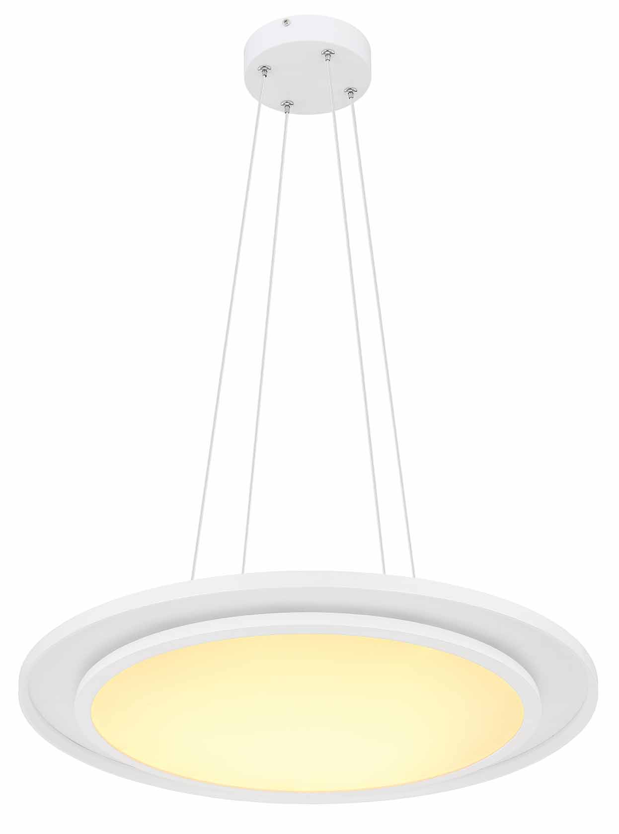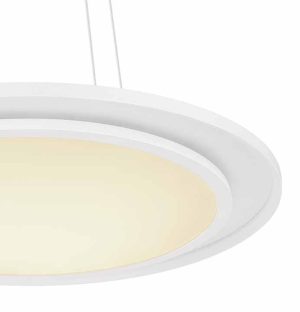 Découvrez la polyvalence de l’éclairage avec notre élégante suspension ronde blanche de la série Murphy. Cette lampe esthétiquement attrayante, d’un diamètre de 60 cm, suspendue gracieusement à quatre câbles, vous offre à la fois un éclairage chaleureux de 2700 Kelvin et une option de lumière blanche froide éclatante de 6500 Kelvin grâce à la technologie LED intégrée. Enrichissez votre espace avec des lumières rouges, vertes ou bleues d’une simple pression sur le bouton de la télécommande fournie, qui dispose également d’une fonction pour atténuer la lampe et fixer la couleur de la lumière. De plus, la fonction mémoire intelligente se souvient de votre dernier réglage utilisé, rendant la création d’une atmosphère personnelle plus simple que jamais.