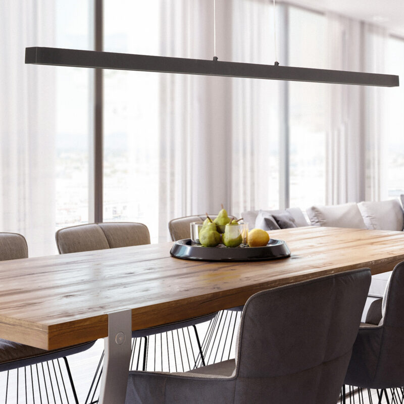 La suspension Light Stripe de la série Danske est un ajout moderne et minimaliste à votre intérieur. La lampe est équipée d’une bande LED remplaçable de 20 Watts, avec une température de couleur de 2700 Kelvin et un rendement lumineux de 2000 lumens. La hauteur est réglable lors de l’installation de 20 à 125 cm, afin qu’elle s’adapte parfaitement au-dessus d’une table à manger ou d’un espace de travail. Grâce au variateur intégré entre les câbles de suspension, vous pouvez facilement ajuster la luminosité selon l’ambiance souhaitée.