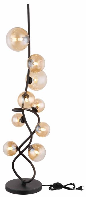 Lampe de sol noire tournée 9 boules en verre d’ambre Globo Tuberius
