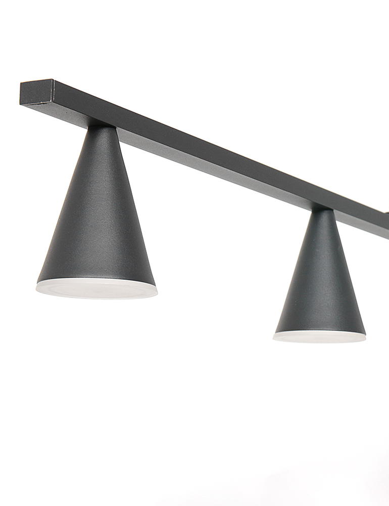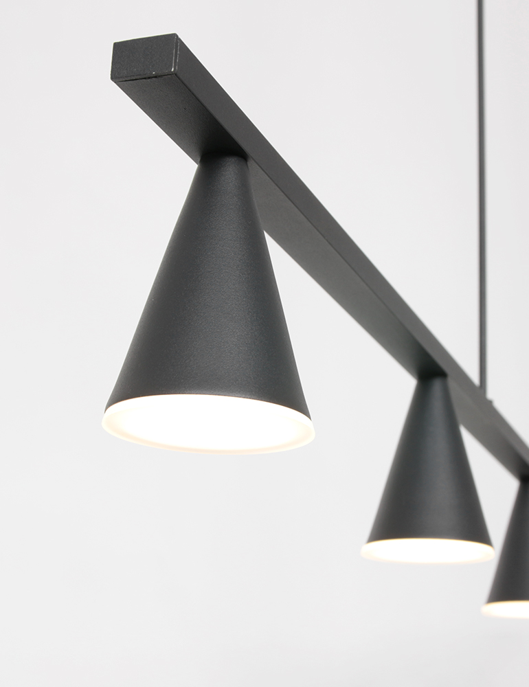 Si vous souhaitez éclairer toute votre table à manger, nous avons pour vous la “Vortex” de Steinhauer. La lampe doit son nom à chaque abat-jour en forme de cône sur ce luminaire suspendu. Cette lampe noire mesure 1,20 mètre de long et ses cinq sources lumineuses LED offrent une lumière agréable. Si vous souhaitez un dîner plus romantique, un variateur tactile est facilement accessible au centre de la lampe. Bon appétit !
