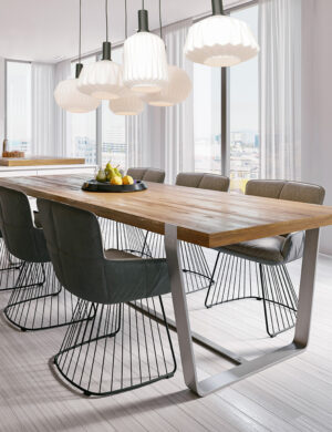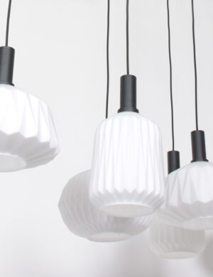 Lampe de table à manger origami verre à six lumières Steinhauer lointain nervuré noir