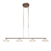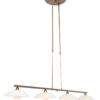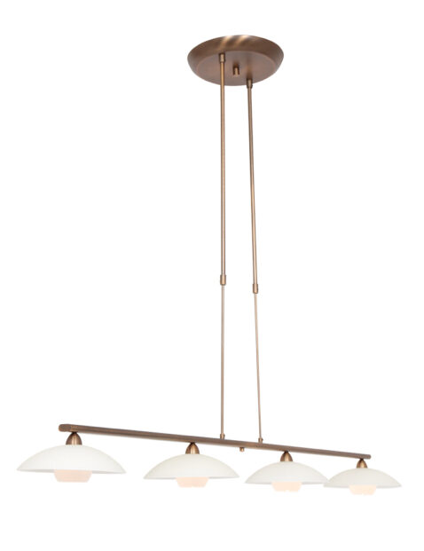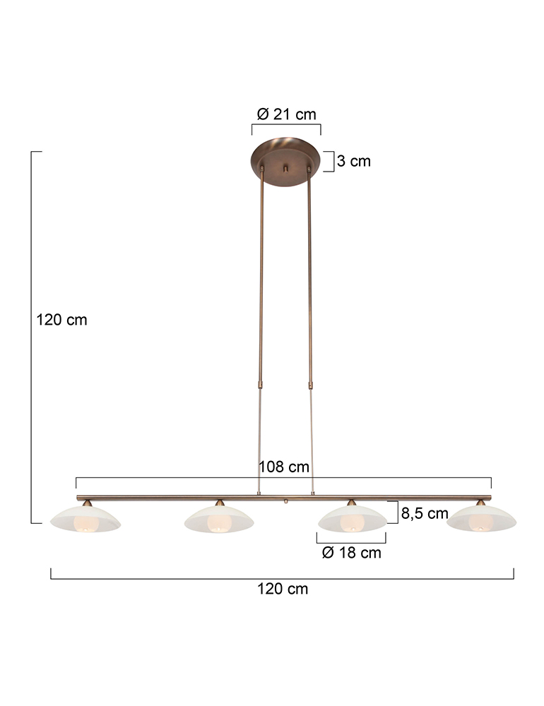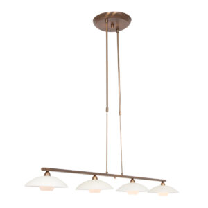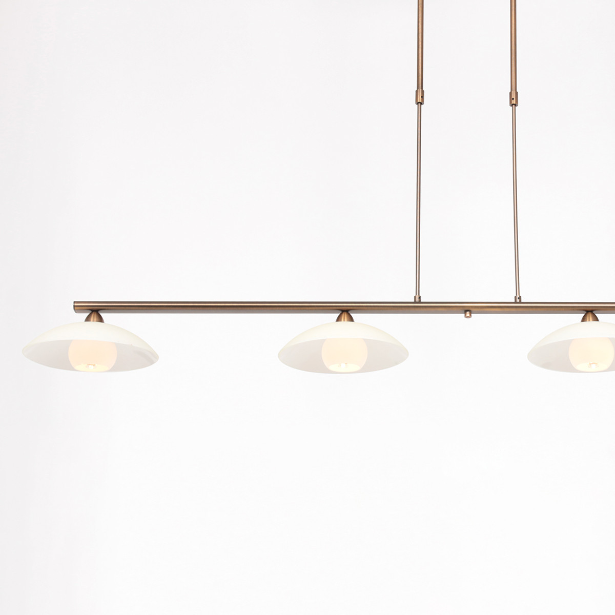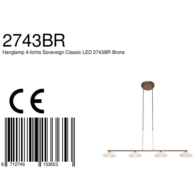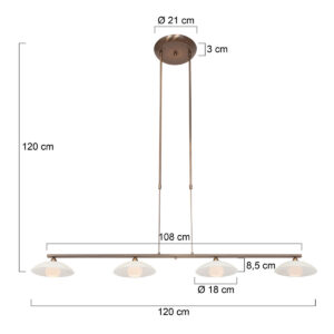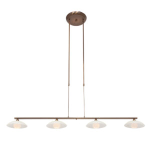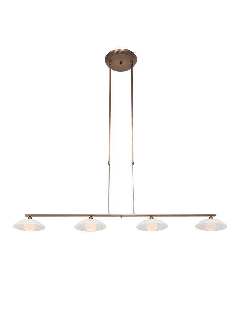 La suspension Sovereign Classic est un ajout élégant à votre intérieur. Le tube en métal de couleur bronze supporte quatre plats en verre crème, chacun équipé d’une source lumineuse LED de 3 Watts. Avec une température de couleur chaude de 2700 Kelvin et un rendement lumineux de 300 lumens par lampe, cette suspension offre un éclairage convivial. La hauteur est réglable de 80 à 120 cm, vous permettant de l’ajuster parfaitement à votre table à manger ou à votre espace. Le variateur intégré permet d’ajuster facilement la luminosité.