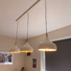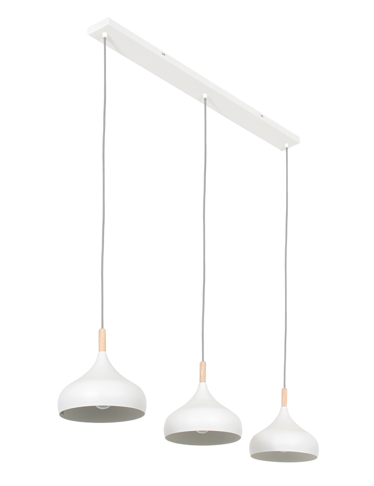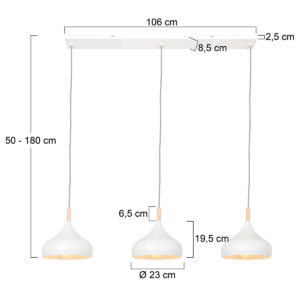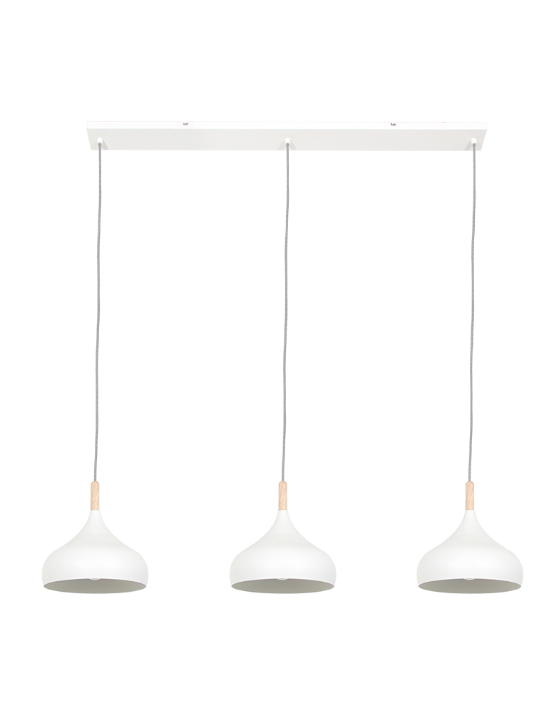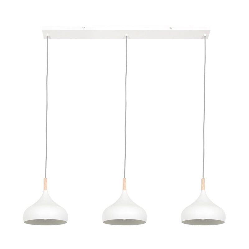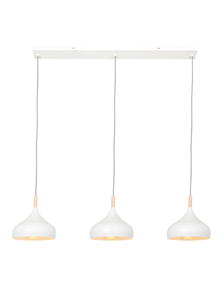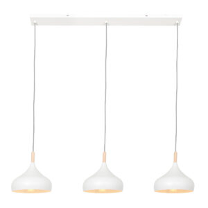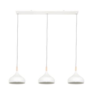 La suspension Bjorr dégage une simplicité et une convivialité scandinaves. Les trois réflecteurs ronds blancs avec un accent en bois sont suspendus à un caisson de plafond blanc de 130 cm de large. La hauteur est réglable entre 50 et 180 cm, de sorte que vous puissiez l’adapter parfaitement à votre espace. Équipée de trois douilles E27, adaptée aux sources lumineuses jusqu’à 40 Watts. La lampe est dimmable avec un variateur externe (non fourni) pour une ambiance supplémentaire.